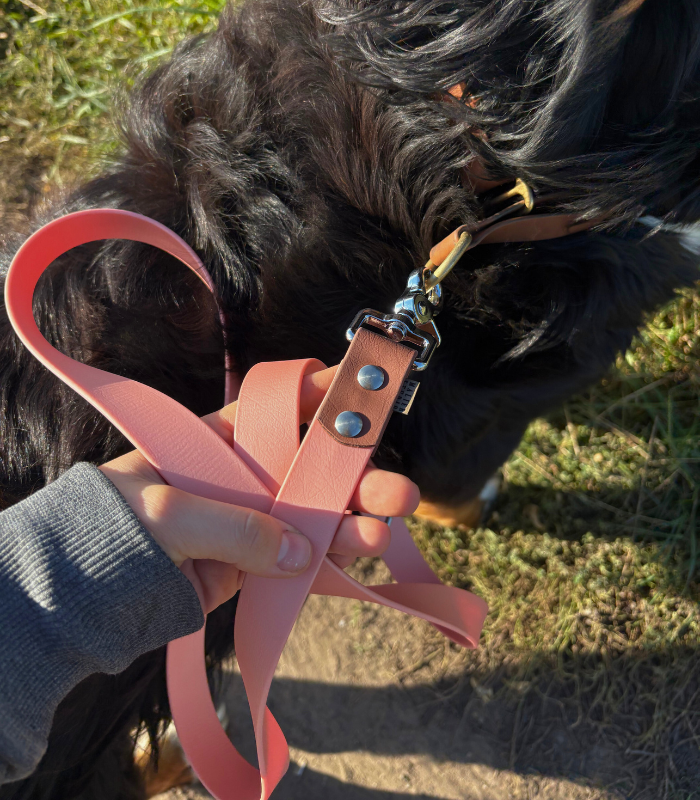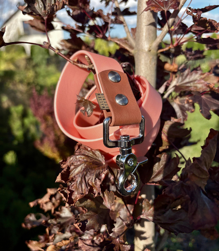 Materiał: Biothane Standard® Rose Gold (PK525) & Brown (BR522)